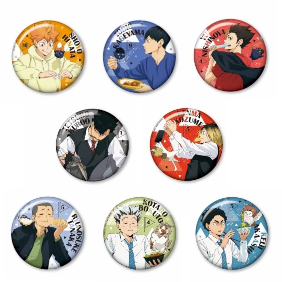 An exclusive can badge collection featuring the team mascots for the sports manga and anime by Haruichi Furudate, Haikyu!!.
