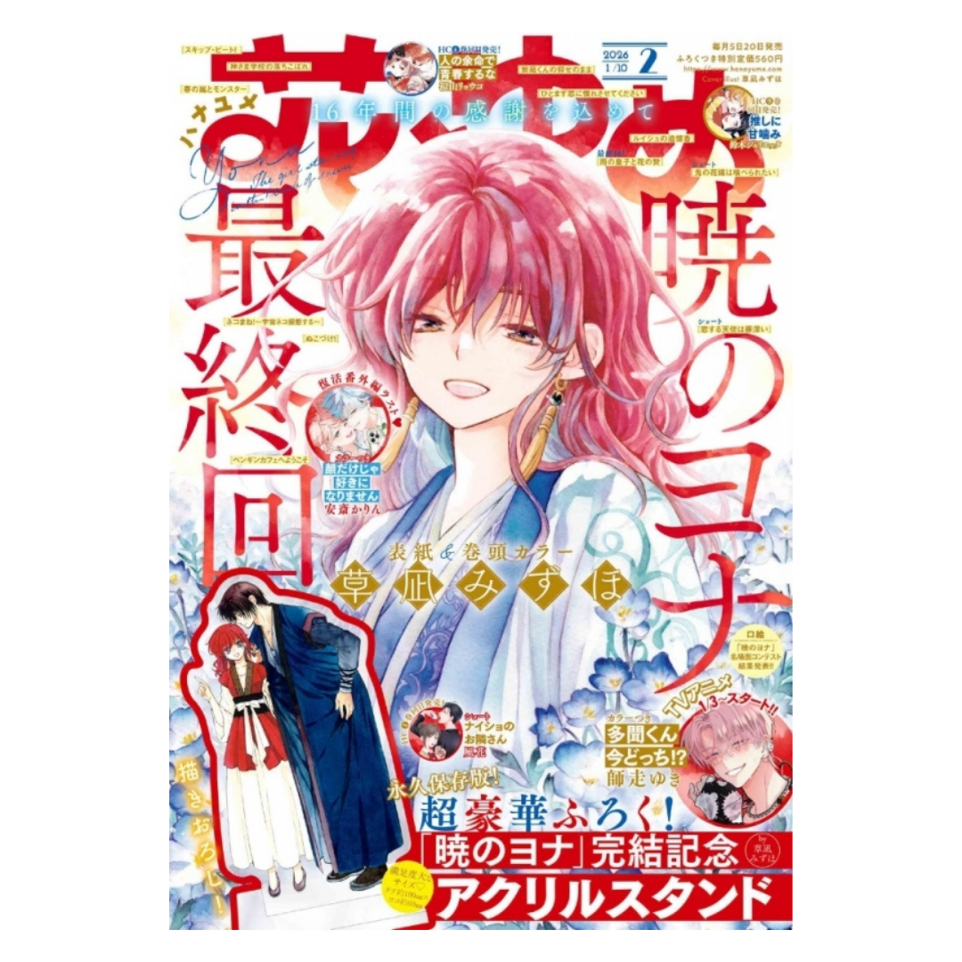 The official January 10th 2026 Issue of the Shoujo magazine 'Hana to Yume' featuring a cover from 'Yona of the Dawn' by Mizuho Kusanagi. This issues also includes the last chapter for the series.